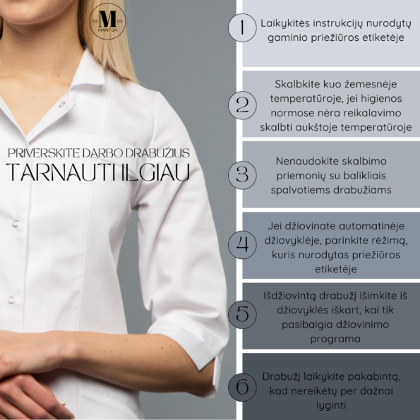 Dalinamės su Jumis sukaupta patirtimi apie darbo drabužių priežiūrą norint juos išlaikyti kuo ilgiau. Neabejoju, kad pritaikę šiuos patarimus, ilgoje perspektyvoje sutaupysite nemažai pinigų.